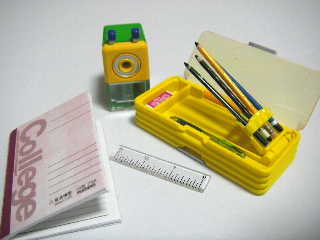 お気に入りの文房具 1.新品をおろす日(色違いバージョン)懐かしい筆箱や鉛筆削り。筆箱の鉛筆を入れるところはちゃんと起き上がります。両面開くようになってるし、鉛筆も太さ1ミリくらいしかない。ノートは(2センチ×3センチくらい)数ページ有り、罫線までひいてある。消しゴムにはバーコードまでついております。名前は「あつまるくん」 お次は... 今日はお豆腐のお味噌汁 ごはんま~だ?! 1.みそ汁「おなべの取っ手と包丁は奥に」が我が家の鉄則です。手前に置くと波くんの手が届いてしまい、ちょっとした隙に大惨事になりかねないので おなじくごはんま~だ?! 2.厚焼き卵 と 9.焼き餃子赤いチェックの水筒は本物サイズを持ってるの。ならべて写真を撮ってみようと思ったけど、無理だった。大きさが違いすぎてピントが合わない。餃子は、お水が浮くようになっているのが、スパゲッティの見本のようでかわいいちっちゃいラー油もよくできてる。お子皿にはいっているラー油はつまみぐいようか?しかし、餃子はいつまでたってもうまく焼けるようにならない。波ママもまだまだ修行が足りないな