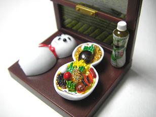 全国駅弁フィギュアまたまた買っちゃいました。今回は箱の形がおもしろいシリーズ。欲しかった「だるま弁当」だけ店頭になかったのですが、お店の方に聞くと快く奥から出してきてくれました。家の近くのミニストップなんだけどここの店員さんは気持ちの良い方がとても多いので、大好きです。きっとオーナーも良い人なんだろうな。 富山駅 ますのすし 下関駅 ふく寿司 千葉駅 やきはま丼 今治駅 瀬戸内しまなみ街道ちらしずし 高崎駅 だるま弁当 松坂駅 モー太郎弁当一番気になっているのは「モー太郎弁当」です。さすが松坂ですね。お弁当のふたを取ると、童謡「ふるさと」が流れるそうです。一度食べてみたいなぁ