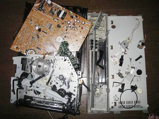 今日の波ママは怒っていますパパが帰ってきてからの言動にかなりいらいらしていたんです食事中もほぼ無言。(波くんは先に食べ終わって別室で遊んでいました)でもねケンカするのもめんどくさいし、まあ今日のところは忘れようと思っていたの。けれどその後最悪の事態が・・・・・・さて問題です。これは何の残骸でしょう???・・・・・・・・・・・・・・・答えは、ビデオデッキです。やってやりました。かんぷなきまでメッタメタですだってね、このデッキは波ママが一番大事にしているビデオをだめにしたのよ世界でたった一つしかない、大切なしかもお金で買えないテープ。「波くんがおなかの中にいるときのエコーのビデオ」パソコンに保存している最中だったの。急にカタカタカタと音がして止まってしまった。しかも取り出せない。ビデオを開いてみると中でテープはびよびよになってるし、どうにもこうにも取り出せないから、やっちゃいました。腕力でネジを全部はずし、基板を引っぺがし、さらにはじっこからバキバキに。格闘すること1時間。やっとテープが取り出せましたかろうじて90%はパソコンに保存できていたからいいようなものの、かなりショックでした。まあ元はといばうちの家族全員が原因なんですけどね。実は先日、波くんがデッキの中にスプーンを入れてしまい、それを取り出すために私とパパがピンセットを突っ込んで取り出したので、そのときにどこかおかしくなってしまったんだと思いますが、でもエコーのビデオをPCにコピーする直前にトーマスのビデオとかNHKの子供番組のビデオとかたくさんコピーしていたのに、よりによって一番大事なときに壊れてくれました。これはもう寝て忘れるしかないのでもう寝ます。おやすみなさい