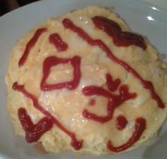 カフェドール行ってまいりました。真夏の東京。そして秋葉原。アツイです。暑さで食欲も減退、食べる機会も減少、というわけで、さぞかしやせただろうなと思ったら1キロも痩せることなく帰宅。「ハロブリ」って書いてあります。(注:HELLO BRIDGEの略)メイドさんにリクエストして(私ではなく、ツレが)書いてもらいました。まぁ、私も書いてもらうならコレだったかな。濁点はハートにしてください、、って。別の場所にもこのネタを書いているのですが、コチラでは違う切り口でレポートしたいと思います。まず店の雰囲気ですが。特にいかにも、という感はなく、アニメのキャラのフィギアや、ぬいぐるみが壁に飾ってあったりする程度。目を引いたのは、メイドさんとの交換日記。でもレスはなし、みたいな。数冊パラパラとめくりましたが、男性が 意中の○○ちゃんに向けて文章を書いております。ヲタクの方々、普通の文字でした。たまに絵が書いてあるんですが、やっぱり普通にうまいです。チェキでメイドさんと写真が撮れます。300円だそうで。3時間半もそこにいたわけなんですが、その間、写真を撮っていた人は5組くらいいました。客層男女比ですが、9:1くらいでしょうかね。年齢層は平均27-8歳(私が上げている感も)一人で来ている方が4割くらい。一人用テーブルってのもあるんですわ。ガッツリ食べているお客はおらず、そりゃそうよね、毎週、いや、数日間隔で来るのだろうから。飲み物頼んで1時間くらいで帰っていく人が多かったです。メイドを呼ぶときは、テーブルの上にある鈴(リンリン~♪)を鳴らします。「お呼びになったご主人様は?(どちらにいらっしゃいますか)」みたいなリアクションで注文を聞きに来ます。「えーっと、ビールと巨峰サワーと~、ミニピザ」が私達の注文です。ここは居酒屋ですか!通常混雑時は1時間半しかいられないところを、なんと3時間半も居座ってしまいました。でもたくさんオーダーしたし、善良なお客ですよ。店内での写真撮影は、食べ物はオッケー。初心者にとってキツすぎず、インパクトそれなりにある店だったと思います。女性が入りやすいお店ですね。もっとも、マニアが行くような店は行列なんでしょうけど。(実際に行列してたし)炎天下のなか、メイドさんたちは呼び込みもしていました。でもあれなら、地方から来たメイドカフェ目当てのお客さんをゲットできますね。メインからはずれた場所に多いですから。というわけで、満喫のメイドカフェでした。ちなみに、ツレのブログ 読み応えあり→ハロブリ