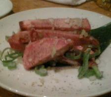 最近携帯電話のカメラの色が悪いわぁ~。昨日は結局おいしい肉をメインにしました。画像は芯たん 1500円なり。いわゆるタンって、平たくて丸いお肉が多いですがご覧の通りです。微妙に、ちゃんと火を通さないといけないくらいの厚みがあります。おいしかったですよ。あとは特上カルビいただきました。私は量を食べないので、高級肉を食べることができます。結構飲んで、二人で1万円いきませんでした。久々に暫定モトカレと飲みながら日々の話をしたわけですがやっぱり年月は、二人の中に溝を作りますねー。当たり前の話ですが、お互いに知らないことばかり。私の結論。おいしいものを食べたくなったら、暫定モトカレを呼べ。です。あ、今は割り勘ですよ。それにいつも迎えにきてもらっているのが申し訳ない!たまには億劫でも外の世界に出なくてはね。いつでも呼んで、って言ってくれました。ほんとかな。もうあの頃の生活には戻りたくないけれど大切な友人としてはこれからも会える人だと思いました。