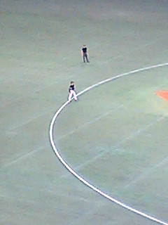 微妙な画像ですびばせん。行ってまいりました。東京ドーム。日米野球1日目。メジャー側3塁。全日本のベンチがよく見えました。6時に試合開始で5時半くらいに入場しようとしたんですが、すごい混雑。なんとボディチェックで長蛇の列だったのです。おかげで選手紹介見逃しましたよ。試合開始直後は結構静かだったお客さんたち。テレビ中継が始まったころから元気でしたねー。この日はホームランが1本出たんですが、なんとそのときチリドックを買いに行っていて、見逃しました。友達が二岡ファンなので代わりに応援してきましたよ。試合は残念ながら負けてしまいましたが、野球観戦ってやっぱりいいなぁと思いました。ありがちですが、ジョー・マウアーがカッコヨカッタです。