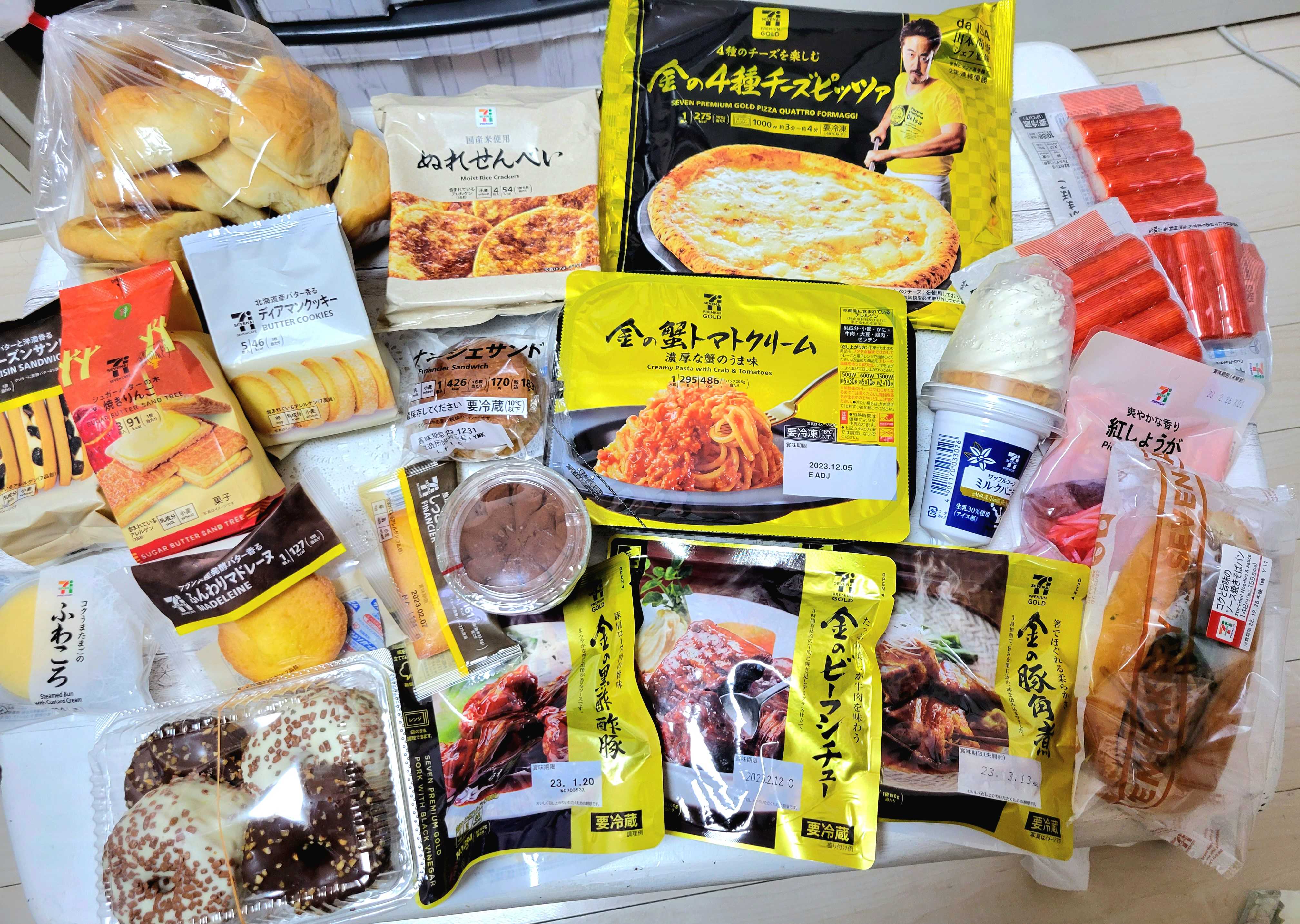 数日前、コンビニなどで食品を爆買いしました😜前々から気になってた、セブンイレブンの「金の~」シリーズは、なんでも美味しいらしい酢豚やビーフシチュー、角煮、蟹トマトクリームパスタ🍝とりわけ、ピザは絶品だとか🍕世界ピッツァ選手権で2年連続優勝した、中目黒の有名な山本シェフ監修のオススメ品らしい✨ここには4種のチーズピッツァしか映ってないけど、マルゲリータも買いました😜いかにも太りそうなクロワッサンドーナツ(ミニクロドット)や、マスカルポーネロールガラス容器に入ったティラミスもドーナツの裏側、美味しそう🍩こんな大量なの、すぐ消費出来る訳はないのでパンとドーナツはラップ個装し全て冷凍保存買った物は、まだ殆ど何も食べてないので味の感想はまたいつか~😜 にほんブログ村 にほんブログ村