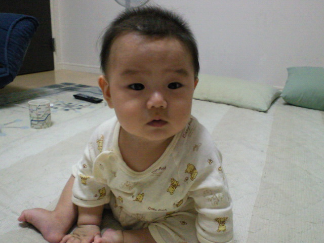 一人で座れるようになりましたといっても、長時間は無理ですが・・・なので布団の上で。まぁ、人為的にこの格好にしているので自ら座ることはできません。