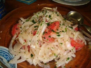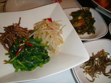 連休中、前の会社の同期を誘って、うちのだんなさんと3人で『山海野村』に行ってきました。元同期とはお店の近くの駅で待ち合わせたのですが、もともと待ち合わせ時間に遅れ、さらに地下鉄で1駅向こうまで乗りすぎてしまい、乗り換えて1駅戻ったはいいけど、出口を間違え・・・と、30分待たされました。 まぁ、いいや。お料理は美味しかったから。 ナムルたくさん。 キムチもいろいろ。 海鮮チヂミ。具がたくさんでおいしいです たこの炒め物。一番辛かったかしら。 大好きなカムジャタン。〆はいつもより、スープを多めにしてもらって雑炊風に。 サービスのサラダ。 サービスのいちご。 お会計は3人で9000円ちょっとととってもお値打ちでした