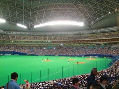 先週の土曜日、野球のチケットをもらったのでだんなさんと名古屋ドームに行ってきましたオリックスのビジターゲームを見ることができるというチケットで窓口で引き換えが必要。あんまりいい席じゃないだろうな~と思ったら、想像通り、3塁側の内野Bでした。でももらいものだから仕方ないか(それにどうせビール飲むだけだし・・・) かなり後ろの方。でも私のまわり、かなりお客さん入っていました。ビール売りのお兄さんはつかまえやすくその点はとてもいい席 オリックスで知ってるの、カブレラくらい。って、名前聞いたことあるっていうくらいですが中日も半分くらいしかわからない・・・20年くらい前の選手ならだいたいわかるんだけど。 途中で大量のちびっこチアガールが出てきました。でもやっぱり子供より若いお姉さんのほうがいいね 私、この後別の予定があったので試合途中で帰ってきました。残念でしたが・・・この後は証券会社時代の支店長のおうちに遊びに行ってきました。また次回、ご報告します