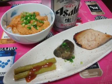 先ほどはカレーでしたが今回は雲丹うにも最近はおとりよせでちょくちょくいただいています。40グラム入りのパックが1つ390円なのです。チリ産ですがなかなかおいしいのですよ~。 うに丼にしたり、(おかずは残り物なので量も少なくって貧乏くさいです) 甘エビとしらすと丼にしたりしていただいてます。