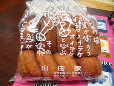 今月1日、赤福のついたち餅を買おうかなぁと思って高島屋に行ったら、混んでいたので断念かわりに何かおいしそうなあんこのお菓子ないかなぁと思ったらいいものを発見人形焼きです。昭和の時代にぴったりな古めかしい外見。お値段は600円くらい。見た目の割りに高かったのできっとおいしいんだろうなぁって思い購入です たぬきとか太鼓の形してます。 生地は薄めでしっとり、そしてあんこがたっぷり。こんなおいしい人形焼き、初めて食べた~東京の『山田家』というところのです。銘菓百選にあったのですが初めて見たので毎日入荷しているわけではなさそう・・・また買いたいと思うお菓子でした。