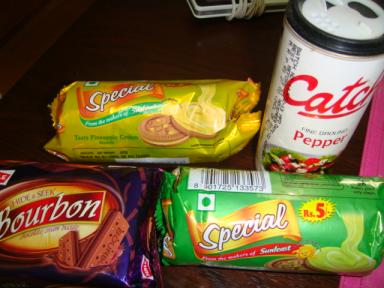 友達がインドに行ったそうでおみやげをもらいました。 ビスケット3種類とペッパー。インド、かなりヘビーそうなので個人的にはあまり行く気なしです友達の話によるとカレーがとってもおいしかったそうです。『カンボジアよりは上だった』と言っていたので、ベトナムくらいかな?というのが私の想像です あっ、飛行機に乗ったら、もたれていないと座席のシートが前に倒れてきちゃうんですってそういえばロシアの飛行機もそうだった~。ということはロシアくらい??