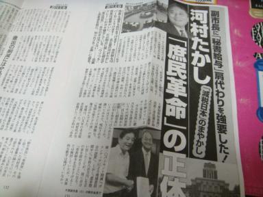 先日、出勤時に郵便受けを開けたらこんなものが。 週刊文春の記事のコピー。通勤時の時間つぶしになりましたこんなのが入っているって、私の実家方面では考えられないのでここは都会だね~とある意味感激。6日はトリプル選挙、ちゃんと投票してこようと思います。 3日は節分、普段あまり買わないのですが買ってきました。 ヒレカツ巻き、鉄火巻き、ねぎとろ巻き。 ヒレカツ、なかなか大きくっておいしい~。 こんなに買ったけど、食べられるわけなく、3日かかって食べました