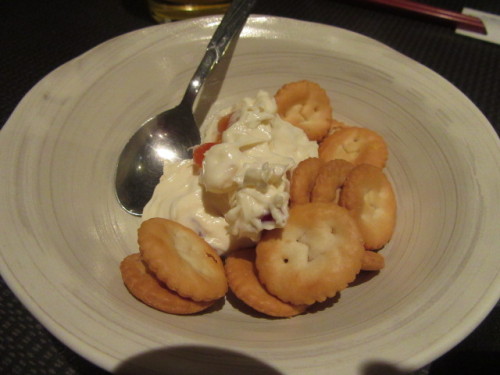 大吉を後にし、歩いてすぐの八剣伝へ行ってきました。クラッカー&クリームチーズ。お好み焼きサラダ。チキン南蛮。エクストラコールドがあったのでうれしくってフライドポテト。ちょっと高級な牛タン。そしてあんなに大吉で食べたのにまた串ものいろいろ。さらにいろいろ。激辛の担々麺で〆。2軒目、4時間と長居してしまいました。おしゃべりがとっても弾んでほんとに楽しかった