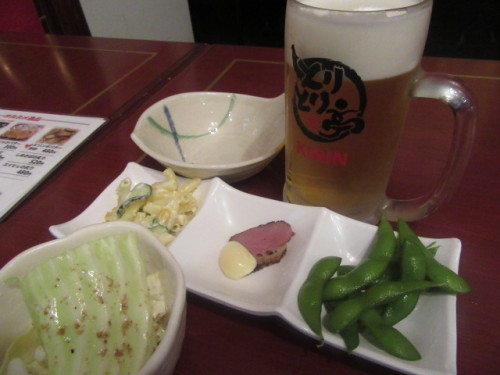 久しぶりにだんなさんととりとり亭に行ってきました。この日、行きたいお店が2軒あったのですがどちらも予約で満席。月曜の6時で満席ってすごいよね~。ということで他にも私は行きたい店があったのですが却下され、とりとり亭に行きました。先に仕事が終わった私、だんなさんとは電話のやりとりでお店を決めたのでひとりでお店に入り、一人でビールメインのチキン南蛮も登場し、ちょうどだんなさんも到着。私、すでにビール飲み過ぎでごきげん他にはささみ明太マヨも注文。相変わらず安かったのですが最近は鳥貴族の方がお値打ちかなって思います。ちなみに夫婦で出かける時はだんなさんが払うって暗黙の了解あり。じゃあ、高いお店に行った方がいいよね