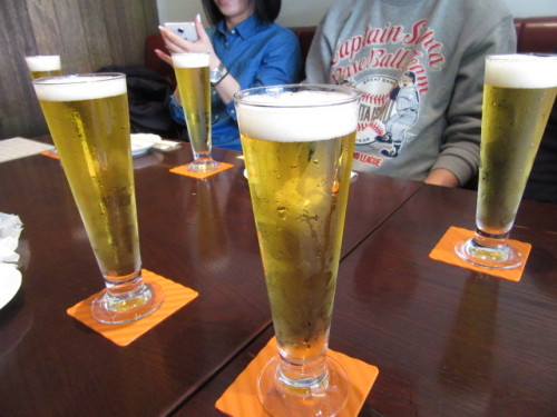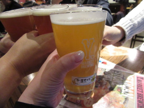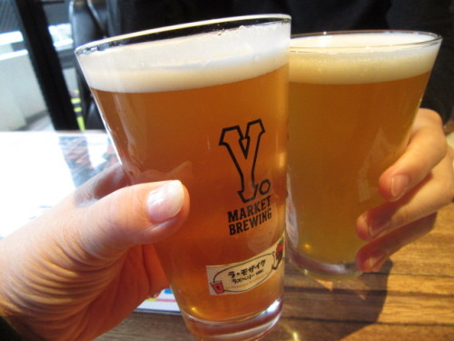 この1年くらい、一番好きなお店はやっぱりこちら、Yマーケットかな。最初は二人で乾杯。一番好きなのはこのチキン。添えられている柚子胡椒風味のソースがとってもおいしい。ザワ-クラフト、これはちょっと酸っぱすぎてあまり好みじゃなかった途中でメンバーが増えて、再度乾杯。みんなでいろいろ飲むよ。で、ビールの種類を変えてまた乾杯。この乾杯風景ももう何回みたかわかりません。一度、ひとりで行きたいなって思うんですが私、一人で飲みに行くタイプじゃないのでちょっと敷居が高いんです