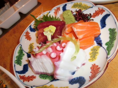 女友達3人で飲みに行ってきました。新九というもつ鍋のお店です。では乾杯お酒にあいそうなお料理いろいろ。お刺身。もつ鍋。これがメインなんだけどなんだかあまり味も量もインパクトないかんじでした。肉豆腐。餃子。さんまのからあげ。もつ鍋の〆は雑炊です。デザートは凍ったマンゴー。さらにサービスでアイスクリームももらえました。お店の雰囲気はシックでとてもいいんですがお料理、全体的にいまいち。土曜日だけどお店はすごくすいていてそれも納得かな。でも話は盛り上がったのでよかったです