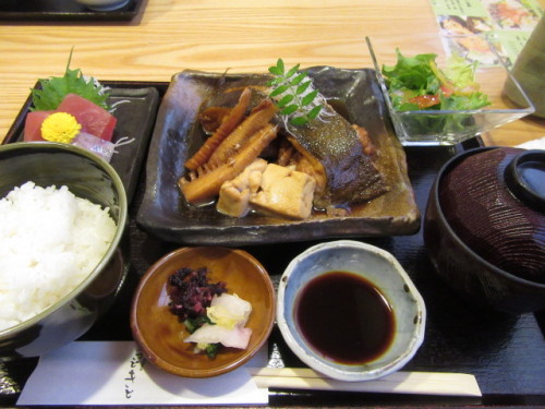 先日、おばたちと行ったばかりのきときとですが今回は会社の同僚と3人で行ってきました。一度ランチでも行きたいねぇと言いながらなかなか行けず、このGWにやっといけることに。こちら、前回同様、私は煮魚定食。こちらは氷見うどん御膳。うどん、お稲荷さん、かきあげです。私はあんまり好みじゃないかも。こちらはお刺身定食。これも本当に新鮮そうで一度食べてみたいなぁと思ってます。豪華でしょヒラメなんですが卵もたっぷりですっごくおいしい。濃い目のしっかりとした味付けです。クーポンを持っていったらこんなデザートもいただけました。3時間おしゃべりして、気分すっきり。今度はぜひ、飲みながら話したいなぁ。