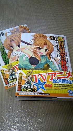 織田信奈の野望にはまっているのでコミックス2冊買って来ました。ラノベ、コミックス、アニメとマルチに展開中です。(ラノベの4巻~6巻も一緒に買いました)コミカライズ「織田信奈の野望」1巻と2巻。信奈を初めとしたキャラクタたちがイキイキとしてます。天下布武キャンペーンもやってますよ!■商品名:織田信奈の野望(1) [ 青刃時雨 ]■レビュアー:名無しさんの3倍 ※投稿時■レビュー内容ラノベで人気を博している「織田信奈の野望」のコミカライズ作品です。あにめともまたちょっと違った織田の大将を味わえますよ。サルをいじめるときの勢いが一番激しいような気がします。アニメが大人気放映中の今は天下布武キャンペーンもやっているので興味がありましたら是非。 もっと詳しく見る
