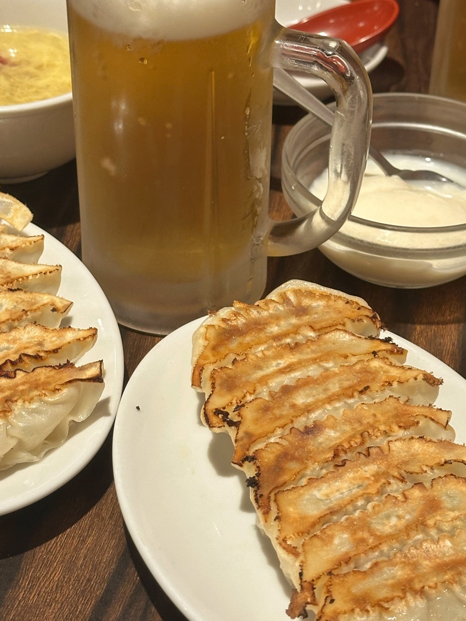 このところ餃子が食べたくなると天津餃子に走っていてご無沙汰していた珉珉さんへ GO!!!!どうしてもここの王道餃子が食べたくて…とてもお財布にやさしいお値段設定もあって近隣のサラリーパーソンのランチ場となっているので平日は11時半にはほぼ満席になる人気店それでも観光客がほぼゼロなので穴場なのよ半年ぶりくらいでお伺いしましたが値段が2段階くらい上がっていましたそれでもまだお財布にやさしいけれどね…焼き餃子と水餃子セットから…焼き餃子は厨房でガンガン焼いているのであっという間に出てくるのよねなので、タイミングによっては焼き加減と温度がいろいろ…今回は程よい焼き加減&程よい熱さカリっと香ばしい焦げとモチっとした皮のなかに野菜たっぷりやさしい餡ラー油たっぷりでいただくのが好みメニュには10分と書かれていますがほどなくして水餃子も運ばれてきます 焼き餃子と水餃子は同じ餃子?なのだと思うのだけれど、スープに浸っている餃子はなめらかでちゅるんとした皮なんともやさしいお味なのだけれどスープに針生姜とネギがたっぷり入っているのでラー油のかわりにピリッとアクセントこれがたまらなくおいしいのです初めて食べたのはジンギスカン 中華でジンギスカン?ですが北東部だと羊料理はふつうにあるものと言う訳で、羊肉の炒め物って感じこれがガツンと羊味で大ヒット大き目カットの玉ねぎ、ネギも入りご飯の進むことったら!的なお味実はこの日はビールのアテだったのでご飯は食べていないのですがきっとご飯に合うのだろうという想像です最後になめらかな小杏仁豆腐をいただきごちそうさまでした珉珉 八重洲店(みんみん) MAP東京都千代田区丸の内1-9-2 グラントウキョウサウスタワー B1F☆★ブログランキングに参加しています★☆一日一回ポチッと応援クリックよろしくお願いしますにほんブログ村こちらもよろしくねメッセージはこちらからお願いします