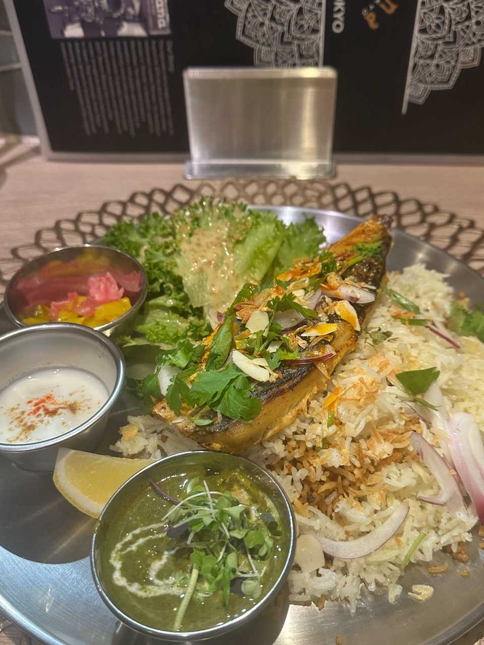 六本木のミッドタウンに入っているニルヴァーナさんはの2号店がヤエチカのカレーカルテットに出店されたの…は、もう何か月か前そろそろ落ち着いたかしら~?と前を通ると時間によっては行列なのよねなので、時間をずらして気になっていたアレ鯖マサラローストビリヤニ(1500円)プラス20円でミニカレーを付けられるとのことでほうれん草&チーズカレー(パラクパニール)を…届けられたシルバーのプレートは色とりどりサバのマサラローストがどーんとのってるビリヤニなんて初めてのことレモンを絞り鯖だけをパクリといってみたらばローストされた肉厚の鯖はカリッと焼かれて脂がのっていて香ばしくておいしいったら…ピンク色に染められた?生姜とキャベツのアチャール、クミンの香りがするヨーグルトソースのライタをかけて混ぜ混ぜライスと白いライスと茶色く色づいた部分があって味の変化を感じられるパラパラのバスマティライス辛みはほとんどないので、鯖の炊き込みご飯というかやはり「ビリヤニ」としか言いようのないもの途中から、パラクパニールもかけて…バラバラに食べるのもOKですがこうやっていろいろ混ぜて想像以上の味の変化を楽しめるのもビリヤニというかミールスの良いところ良いお店が出店してくれたなぁ~カレーカルテットはこれで欧風カレー、南インドカレースープカレーと日本の洋食屋さんが誇るカツカレーといろいろ楽しめてうれしい限りだわカレー&ビリヤニ ニルヴァーナTokyo MAP東京都中央区八重洲2-1 八重洲地下街 B1F☆★ブログランキングに参加しています★☆一日一回ポチッと応援クリックよろしくお願いしますにほんブログ村こちらもよろしくねメッセージはこちらからお願いします