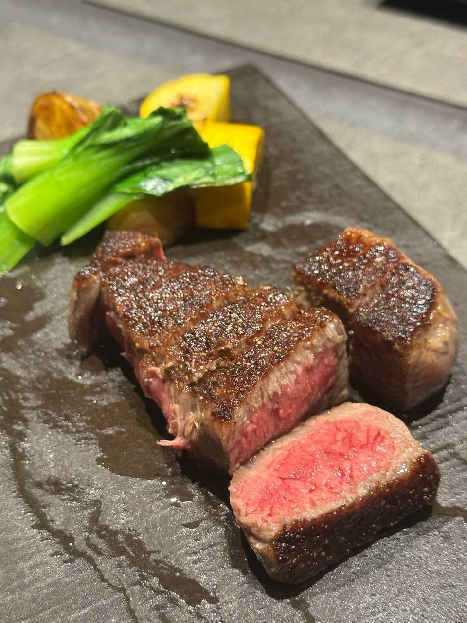 お世話になった方とのフェアウェルランチこんなところに鉄板焼きのお店があったとは…的な場所再開発目覚ましい八重洲、日本橋エリアにあってまだ全然手付かずの八重洲と日本橋の境界線な場所の雑居ビルの地下…一見さんには敷居高そうな佇まいと室礼ですまずはシャンパーニュで乾杯っお疲れさまでした! 個室に通されたのでどんな感じで進んでいくのかなと思っていたのですがスタッフの方は付かず離れずの良い距離感の接客ですまずは本日のお肉のご披露岩手産だったかな?黒毛和牛だそう お野菜は黄ズッキーニ、じゃがいもミニサイズのズッキーニのようですお肉が引かれた後運ばれてきたスープはクラムチャウダー サラリとしたチャウダーでステーキの前でもあっさりといけますそして見目麗しいサラダ わさび菜、スプラウトにハスイモレモンのドレッシングでさっぱりとワシワシと食べられちゃうすっかりお肉の準備が完了よミディアムレアで焼いていただいた牛肉はうつくしい サシのうつくしい牛の100gは量ピッタリとろけるような脂のヒレ肉はこれ以上だと胃もたれしちゃうお歳頃岩塩、わさび、塩ポン酢、生醤油が用意されていましたが、塩ONLYがいちばんおいしいかも途中、胃もたれしそうになってきたのでわさびを付けるとさっぱりして味変成功それにしても …久しぶりの鉄板焼きだわ御飯、香の物、赤出汁も届けられ… この白飯おいし〜 これは当たりなお店最近お米の高騰のせいかお外のご飯が当たりのときうれしくなっちゃうのよねどこかの元大臣じゃないけれど「お米買ったことない」んでご飯は外食するものだと思ってます(小声)最後にデザートとコーヒーも付いていてちょうど1時間で終わるコース オケージョンランチにピッタリなコースですがそれにしても …お客が少なくて心配近隣にいっぱいホテルがあるのだからどこかと提携するといいかもね八重洲 steak & seafood 鉄板焼き 一心 MAP東京都中央区日本橋3-3-12 E-1ビル B1F-C☆★ブログランキングに参加しています★☆一日一回ポチッと応援クリックよろしくお願いしますにほんブログ村こちらもよろしくねメッセージはこちらからお願いします