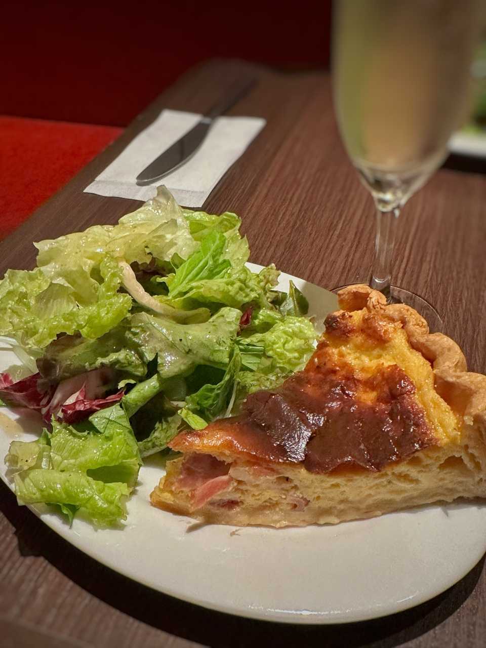 前菜はベーコンとチーズのキッシュサラダ添え