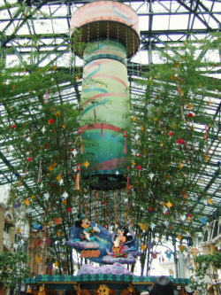 7/6、ディズニーランド、ワールドバザールには七夕の笹飾りこの紙にお願い事を書きます。ミッキーやミニーのお願い事もありました夜のライトアップもキレイですみんなの願いが叶いますように・・・