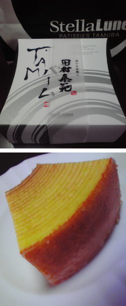 先日、2005年のTVチャンピオンクリスマスパティシエ選手権で優勝した田村さんの「TAMバーム」をいただきましたしっとりとして、おいしいバームクーヘンでしたTAMバームのお店、stellaluneは奈良にあるのですが、今回東邦ガスのリベナス岐阜でスイーツ教室があり、TAMバームも販売されたのです。TAMロール(ロールケーキ)もおいしいらしいです