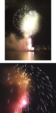 昨日は長良川の中日花火大会でした。雨で、どうなるかな~と思ったのですが夜にはやんで、花火の音も聞こえてきたので出かけてみました。8時過ぎに金華橋の辺りについて橋の上から、しばらく観ていると・・・あっというまに「おわり」の文字が・・・雨で増水のため、予定より早く始まりいつもより30分早く終わってしまったのです。少ししか観ることができませんでしたが最後だけでも観ることができてよかったかな