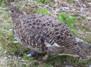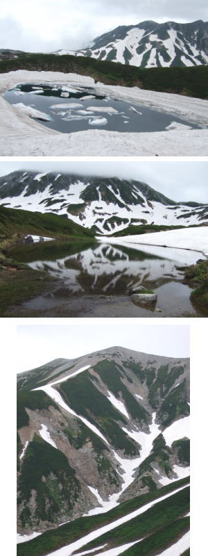 みくりが池の近くで雷鳥と遭遇発見された方が、「雷鳥がいますよ。」と、教えてくれたのです。なかなか見ることができないとのことだったので感激もひとしおです