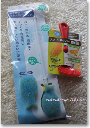 先日購入したお茶を入れるボトルが洗いにくかったので・・・おさかなボトル洗いスポンジを買いました。これで底までしっかり洗えますついでにスプーンマッシャーミニも購入。ミニサイズなので収納場所もとらないし、サラダなどで卵やポテトをつぶすのにちょうど良いです。チョコッと使いにピッタリな多機能ミニマッシャー♪ウチゴハンで大活躍!【chocotto】シリーズ★MARNA・K291スプーンマッシャーミニ (マーナ)★つぶす・ざっくり切る・まぜる・すくうがコレ一本♪【2sp_120511_b】 マーナ おさかなボトル洗いスポンジ