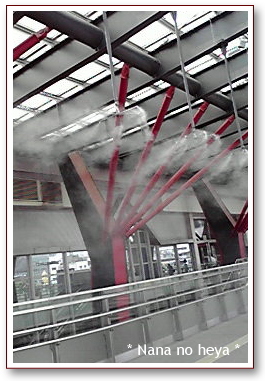 今日も一日暑かったですね~岐阜駅北口を通ると、ミストがありました。このミスト、「杜のミスト」といって、水と太陽光発電を利用しているのだそうです。愛・地球博(愛知万博)の時に使用されたミストと同じ方式でエコなミストなのだとか。ここを通ると、ここだけとても涼しかったです~