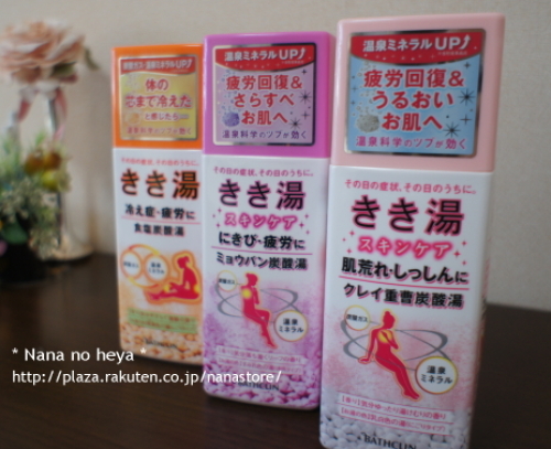 冬は入浴剤を入れます。お気に入りは「きき湯」。スキンケア効果があるピンクが我が家の定番ですが特に寒い日はオレンジなど、使い分けています。きき湯は炭酸ガスの発砲入浴剤なので、保温効果が高くて体が温まります~