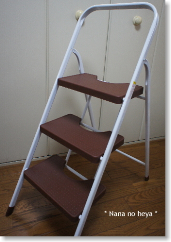 ベルメゾンで購入した、カラフルステップツール。いろいろなカラーがありましたが、ブラウンの家具も多いので、こちらのカラーにしました。ホームセンター等で売っているものより、おしゃれです。折りたたんで部屋の隅に置いて、必要な時だけ取り出しています。大掃除の時にも活躍しそう