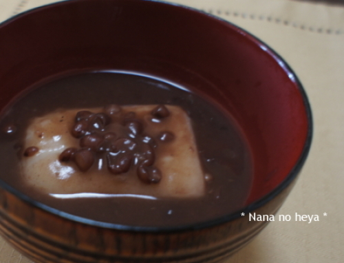 お正月にお餅をいただいたのでお昼ごはんは、おしるこ(ぜんざい?)にしました