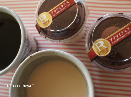 今日のおやつは・・・スーパーで購入した「プチティラミス」。買い物に付き合ってくれた旦那さんに「何かおやつ買う?」って聞くとこういうタイプの物を選んできます・・・(^_^;)