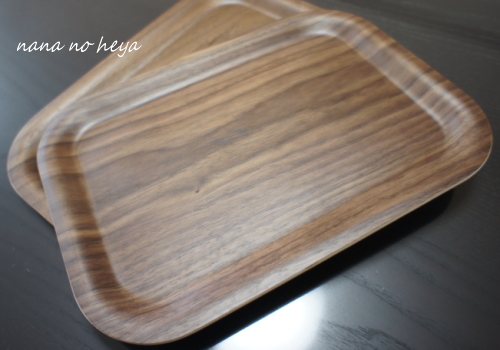 ニトリで木製のトレーを購入しました。マグカップとお菓子をのせるのにちょうど良いサイズです。