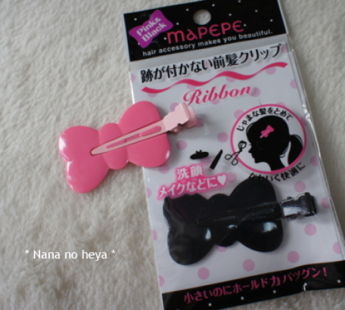 リボンの形をした前髪クリップを購入しました。跡がつかないタイプなので、出かける前にちょっと使うのに便利です。ただ・・・付けたのを忘れて出かけちゃったりしないかちょっと心配