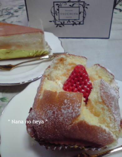 つちやのケーキをいただきました。つちやは岐阜や大垣にあるお菓子屋さん。和菓子の柿羊羹などが有名ですが洋菓子もあるのです。ふわふわのスポンジがおいしかったです