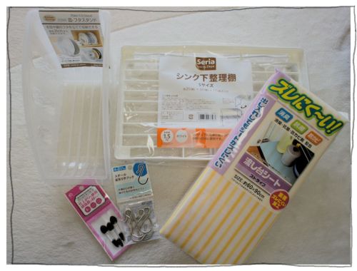 100円ショップセリアで購入したもの。今回は実用品ばかりです。シンク下整理棚は、他にもいろいろ使えそうだったのでもうひとつ欲しいなあ・・・と、思っています。ズレにくい流し台シート。やっぱり鍋とか出し入れしているうちに多少ずれます(^_^;)こればっかりはしょうがないかな~。 にほんブログ村