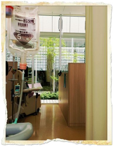 昨日は主人の抗がん剤治療日でした。前回、抗がん剤FOLFILIの副作用で、白血球の数値が減少してしまったので今回は、FOLFILIの量を減らすのかな?と思いきや白血球の数値も元にもどっており、いつもどおりの量のFOLFILIとアービタックスの投与となりました。熱が出たりしていろいろあったけれど、白血球の数値も元に戻っていてよかった~。でも、また今回の投与で減ってしまうかも・・・。そうなったら、量を減らすとか2週間に1回の投与を3週間に1回にしたりすることを考えるそうです。長時間の抗がん剤の点滴は大変ですが、化学療法センターには、中央に中庭があり外の木が見えたり陽が入ったりして部屋が明るいので少しだけ気分も和らぎます。相変わらず・・・私はついていくだけなのに、ぐったり疲れてしまいましたが・・・(^_^;) にほんブログ村