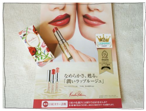 ブロネットのモニターで、「ケサランパサラン スムースリップス(口紅)」をいただきました。 私が試したカラーはC01(CandyPink)です。派手すぎず、地味すぎず、かわいらしいピンク色で、どんな年齢でも使えそう。これから迎える新年や春メイクにも使える色だと思います。唇は丈夫?な方では無いので、口紅によってはカサついたりするのですがこれは大丈夫でした。保湿成分が配合されているからか、時間が経っても乾いてこないです。色の持ちも良い方だと思います。コンパクトサイズなので、携帯にも良いですね ★新色追加! ケサランパサラン スムースリップス(口紅) ケサランパサランさんのブログリポーターに参加中♪にほんブログ村