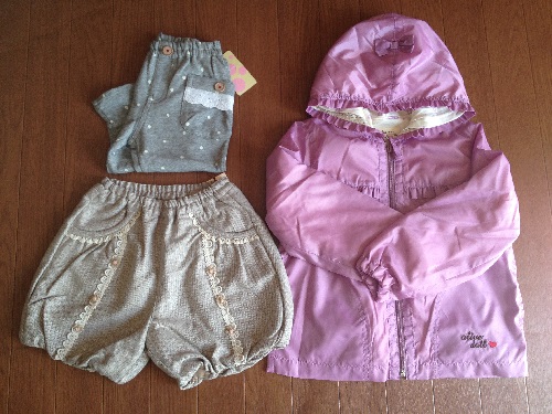 こちらも、少し前になりますがフーセンウサギアウトレットさんの70%OFF SALEで、オリーブデオリーブのお洋服を購入しました。光が反射してしまって見にくくてすみません・・・*水玉柄7分丈パンツ(100cm)・・・1197円*3WAYパーカー(120cm)・・・2394円この他にも折り返しパンツを購入予定でしたがあいにく欠品となりキャンセルになりました。あ・・・左下のショートパンツはベビー&マタニティ用品ならココ 育児&妊娠出産準備用品の総合ショッピングサイト ピジョンモールさんで半額で購入したスーリーのお洋服です。これもとってもかわいかったです。これに合わせる、タイツORソックス、靴を現在模索中です。(梨々花さん、このパンツです。アドバイスありがとうございました)こちらのオリーブのウィンブレ、こんな風に裏地が取り外せるようになっています。これから秋口には、裏地を外して1枚で着せるとちょうどいい感じがします実は、ウィンブレって着せるタイミングがよく分からなくて、今までほとんど購入したことがなかったのですが(結構高いし・・・)色々な方のブログを拝見しているうちにウィンブレのかわいさにはまってしまいました今回買ったオリーブのウィンブレとってもかわいくて、買って正解でした70%OFFの2000円台で買えたのでよかったです。下の子が写真をとっている間ウィンブレを指さして「あたちの~(服)」とずっと言っていたので、下の子用のウィンブレも探してみようと思っていますあとe-子供服 ノンさんで購入した、リーナちゃんのバレエシューズもとっくに届いています・・・今回シューズフェアにかぶっていたからか、セール品なのにソックスを付けてくれました。ノンさんは梱包も丁寧だしホントに素敵なショップさんですサイズが少し心配でしたが、長女に18cmで大丈夫でした。・・・というか靴下を履いてピッタリかな。うちの娘たちは私に似ているのか2人とも足のサイズが大きいです【30%OFF】【15cm→19cm】ミキハウス(mikihouse) リーナちゃんバレエシューズ【楽ギフ_包装...価格:4,189円(税込、送料別)こちら、一度完売しましたがまた在庫復活しましたね