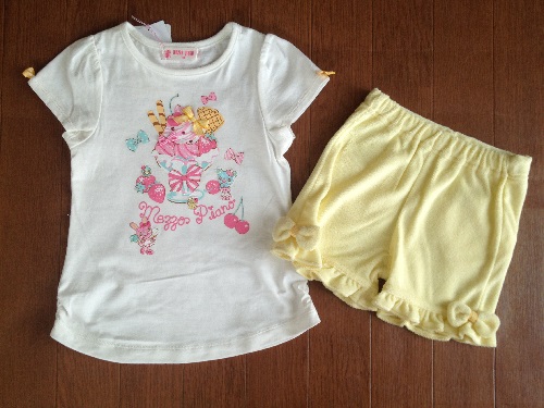 先日はキッズ ピピさんでKPのお洋服が50%OFFでしたね もう、夏服は買わないと思っていたのに、やっぱりKPとメゾは別腹ということで・・・ いくつか購入してしまいました・・・ ピピさん、発送が早くて今日には届く予定なので、お洋服が届いたらアップしようかなと思います。 ところで、ナルミヤオンライン(公式通販サイト)さんが、今日からまた値下げ品追加になるみたいですね まだ、メルマガがきていないので正式には分かりませんが・・・ 私は、前回楽天のナルミヤさんではこちらを購入しました。 こちらのセットアップの100cmを50%OFFで購入しました。 Tシャツのデザインはもちろんかわいいですが、セットのショートパンツがパイル地なので、夏には涼しくてよさそうです。二女の来年用と思いましたが、おそらく今年から着れそうです 私が買ったイエローはまだ両サイズとも在庫があります。しかも今日から60%OFFになるみたいです9000円のお洋服が3000円台で買えるなんて・・・セールってすごいですね あとは、お姉ちゃん用のTシャツやショートパンツも欲しいのが何枚かあったのですが、値下げ率もまだ30%OFFだし、何よりもお姉ちゃんは夏はほとんど体操服で保育園に行くので着ていないお洋服がまだたくさんあるんです・・・ そんなこんなで、買い物かごに入れたまま考えていたら、あっけなく売り切れてしまいました そうなると、やっぱり買わなかったことを後悔する訳で・・・ 結局アウトレットに行って、こちらを買ってきてしまいました。 Tシャツは120cm、そしてピンクのセットアップは100cmを購入しました Tシャツは、オンラインで一度在庫が復活したのですが、迷っているうちに再び売り切れ・・・ ポシェット付きのセットアップもブルーを買うつもりでしたが、こちらも売り切れ・・・お店ではピンクもブルーもどちらもあったのですが、やっぱりピンクがかわいく見えたのでピンクを買ってしまいました アウトレットでは、2枚以上購入で更に10%OFFだったので、実質60%OFFで買えたのでよかったです あとは、ボトムスも欲しかったのですが、ボトムスはあまりありませんでした・・・ 今日の再値下げで、前回30%OFFどまりだったこの辺り欲しいのですが、それでも40%OFFなんですよね~ 皆さん買われるのでしょうか 可愛いお洋服はやっぱり売りきれてしまうんでしょうかね。う~ん、ここで買うのかどうかホントに悩みます・・・
