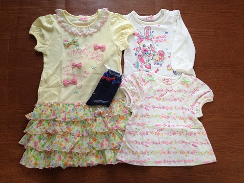 年末年始・・・忙しいですね~やっと先ほど年賀状を書き終えゆっくりパソコンに向かう時間ができたので、すっかり乗り遅れましたが福袋のネタバレを少しずつしていきたいと思います。ネタバレと言っても、今年はほとんど固定の福袋なので目新しいものはないのです。すみません・・・まずは、先日peter mama WEB店さんで購入したこちらの福袋のネタバレです。購入したのは95CMで以下のお洋服が届きました夜に写真を撮ったので、光が反射してしまってすみません。すでに、皆さんのネタバレを拝見していたので、どのパターンで届くのかなと思っていましたが、オレンジのチュニックパターンでしたオレンジって・・・なかなか奇抜な色ですよねでも、一緒に入っていた黒のスパッツとなかなか合いそうだったので着せてみようかなと思っています。今回の福袋のお洋服だけでコーディネートできそうですボトムスが、どちらとも合わせやすい色だったのがよかったです。パンプルムース、これが初めての購入でした。レビューを見ると、今までのパンプルムースのテイストではないみたいで評価があまりよくないみたいでしたが、私にとってはなかなか満足度の高い内容でした。全て日本製ということですが、どのお洋服も手触りがとってもいいんです福袋だと、ペラペラ、ゴワゴワ・・・というのが多くなりがちですが、こちらの福袋はそんなこともなくて、よかったです。今度は、夏用福袋に挑戦してみたいと思います
