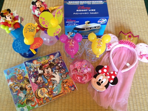 先週のことですが、暑いのと混雑を覚悟でディズニーランドへ行ってきました以下、文章多めです。見にくくてすみません・・・今回はディスニーの夏祭りこのショーをどうしても見たかったのです去年も行きましたが、暑い中たくさんの水がかかって子供も大喜びショーももちろん楽しいし、本当によかったので主人も私も今年も絶対に見にいきたいと思っていました。行く前に、みなさんがブログでディズニーの楽しい様子を詳細に報告してくれていたので、前もって色々と勉強することができましたありがとうございます~8時すぎにゲートに着いたのですが、既にものすごい行列今の時期は、8時開園なんですね・・・びっくりしました。今回は乗り物は諦めていたので、入口付近でミッキーと写真を撮るべく列に並びました。この時点ですでに50分待ちでした・・・列が短いのでもう少し早いかなと毎回思うのですが、結構進みが遅いのでやっぱり50分くらい待ってしまいます。でも、子供はミッキーに会えて大喜びたくさん、ハグしてもらいサインももらってきましたつぎはいよいよ、ショーの抽選へなんと、抽選するだけで30分ほど並びました。去年はこんなに並んでいた記憶はなく、抽選でこんなに並ぶのは初めてだったので、もしかして倍率高いかも・・・と一気に不安になってきました。次女が暑さで機嫌が悪くなってきたので、抽選は主人と長女にまかせ、日陰で待つこと約30分・・・なんと、昼間も夜のショーも両方とも はずれ でしたブログを拝見していると、皆さん当選されて楽しんでおられたようだったので、かなりショックでした。主人も私も、これが一番の目的だっただけに一気にテンションダウンでもでも、せっかく来たのだからということで立ち見で1時間半待ちました。炎天下の中、結構つらいですよね・・・ショー開始の30分から45分前には立って待っていなといけないので、かなりつらかったです。それまでは、レジャーシートを敷いて座って場所取りOKでした。これからディズニーへ行かれる方は、日傘を持っていかれることをお勧めします。でも、待った甲斐があってショーはサイコーでしたよ水も、まあまあかかって子供たちも大喜びでした。このショー9月2日までなんですよね。もう一度リベンジしたかったですが、もう無理かなぁ・・・あとは、乗り物少しだけ乗って結局22時の閉園まで満喫しました。以下今回購入したお土産です。今回は、めずらしくお菓子は買わないで、子供たちのおもちゃ中心です。ミニーのカチューシャは初めて長女が欲しがりました。やっぱりお年頃ですかね・・・こちらは、ミニーちゃんのコンパクトと、次女の電車のおもちゃ。次女はなぜか乗り物大好きです。長女は最近このようなコンパクト気に入ってよく持ち歩いています。こちらのヘアゴムは、5つで1000円です。前回に引き続き2回目の購入です。ゴムがしっかりしているので結びやすいんです。そしてもちろんかわいい子供たちは、パレードも目をキラキラさせて楽しんでいたので、暑くて大変だったと思いますが、連れてきてよかったかなと思います。次はハロウインですね。また来れるといいな~そうそう、今回とっても役に立ったのが長女のステンレス製の水筒です。暑いのでとにかく水分は必須水筒はすぐに空になりペットボトルを8本くらい買ったと思います。長女の水筒には、朝氷をいっぱいにして持っていったのでペットボトルのお茶をそれに入れ替えて、一日冷たいお茶が飲めて最高でした。容量の大きい水筒でしたら尚最高だと思います。あとは、日差しがかなり強いので、日焼け対策は万全にしていかれるといいと思います~日傘持っている方かなりいました。パーク内でも売っていましたよ