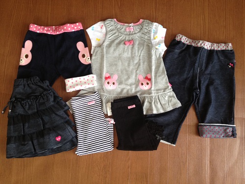 今日は、朝から寒いですね急に真冬のような寒さになってしまったので、子供たちにどんなものを着せたらいいのか分からず、今日はこの寒さにしてはやや薄着で保育園に行かせてしまいました・・・子供用と自分用にキルトジャケットが欲しいな~と思っていますところで、先週末、ミキハウスランドが幕張で開催されました。行くか行かないか・・・直前まで迷っていましたが、結局日曜日に子供を連れて行ってきてしまいました~主人が仕事だったので、私一人で子供二人を連れて着いたのが11時ごろ。着くなり、カートくんショーを見たり、エアートランポリンで遊んだり・・・その後はハッピー!クラッピーショーで・・・結局、お洋服を見れたのは着いてから1時間以上あとでしたすぐにB品コーナーに行きましたが、もちろんかわいいお洋服なんてありませんよね~おこぼれをもらうような人すらいませんでした・・・皆さん仰っていたように、水着が結構ワゴンには残っていました。あとは白と茶色の無地のタイツばかり・・・それでも2~3回行ったり来たりしていたら、お見分け台にリーナちゃんの羽織物があるのを発見しかも120センチだったので買ってきてしまいました。8190円が3500円でした。私の今回の戦利品はこれだけです。なんだかつまらなくてすみません・・・ちらほらいた人の中には、去年の福袋で見かけたお洋服を結構持っていた方もいたので、朝早く行けば2日目でもいいお洋服があったと思います。あとは、30%オフコーナーでレギンスばっかり、買ってきてしまいました。ボーダーはお姉ちゃん用で、あとは次女用に100cmです。グレーのハートのレギンスはどのサイズもありましたが、リーナちゃんは100cmだけだったような気がします。お洋服は30%OFFでも高いですよね・・・レギンスは1000円台だったので、なんだか安い気がしてたくさん買ってしまいました。おそらくB品は買えないだろうと思っていたので、リーナちゃんが買えただけでもよかったのですが、結局福袋がどれだけお得かを再認識させられ、1万円の福袋は絶対に買うぞ決意させられたミキハウスランドだったような気がしますそうそう、RICKY TOWNさんでミキハウスのセール品でてますね。それでも高くて私には買えませ~ん
