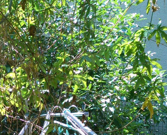 一番最後の写真(グリーンモンスターに取り込まれたうちの洗濯竿)(私の部屋のベランダと妹の部屋のベランダと共用のベランダも侵食されたせいで網戸が開けられない)は蛇かな…