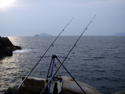 エピソード 2 の、続きです。 m(_)mバラしたショックから、直ぐに立ち直り・・・そう!ここは、破壊島!!!「まだ、おるで!!・・・せめて、あと1回来て~~!!」携帯の電池が切れて、時刻がわからない・・・・・多分24時前後!!!ウツボのアタリが、止まって20分ぐらいたっただろうか??一番沖側の竿が・・・・・飛んだっ!!「よっしゃ~~~!!今度こそ~~~!!」超力招来!!・・・が・・・・・直ぐに浮いて来た・・・・・(- -;50センチはあるが、大きさのわりに、引きが・・・・・しょぼい!!(T T;・・・・・が、まあ良し!! 祈りが、通じて一人感動!!! (@▽@)今度はシャレにならんので、これぼんを呼んだ!!・・・・・が、返事がない!!小さいし、大丈夫やろ!!と、慎重にぶりった!!ピチピチッ!!・・・足元で、タマが跳ねる!!!感動しながら、竿を置こうとした時・・・・・タマが跳ねながら、磯際に向かって滑ってるではないか・・・・・「ウソやろ!もう!ええって!!!」悪い予感がよぎり、急いでハリスを取る!!!タマミが、落ちた!!・・・・・安心して、ハリスを引っ張るが・・・・・テンションが・・・ない!!!急いで海面を覗いたが、・・・・・・・いない・・・(Tд T;「うおっ~~~!!」聞こえたのか、これぼんが顔を・・・・・見せる・・・(= =;遅いって・・・!!興奮がやまないので、これぼんに説明・・・・・しても、タマは帰ってこんが・・・・・興奮が収まり、良く考えると・・・・・色々と反省が、多い!!足場は、ツルツル!!なんでもっと奥に、ぶりらんかったんやろ!!ハリス持たんと、魚を掴めば・・・・・多分、体が海に滑ることを・・・ちびったのか?諦め、肝心!!「もう1回、こい!!!」と、意気込む!!!・・・が、すでに頭の中では、諦めが・・・・・「3度目はもう、ないわ!!」その後、波がまた被りだし・・・・・ウツボも、アタリ出す。諦めて、納竿!!・・・・・しかも、ダメ押しの雨・・・・・お土産こそないものの、多分一番楽しんだと思う!!弟子のこれぼんも、2匹上げ!!!おいらも、2匹・・・ぶりったし・・・針がかりしないあたりも、数回あって・・・ウツボも、てんこ盛り!!何より10年前から来たかった高知・破壊島!!夢を、現実にしてくれた・・・・・・・・・・・・・・・・ニック警部 と やまちゃんエ~ルをくれた、兄貴ほか皆様方に感謝!!!m(_)m そして、これからも、よろすく!!!