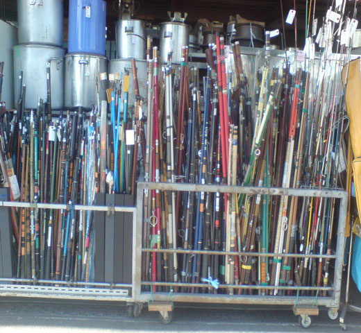 仕事の合間に、立ち寄ったリサイクルショップ(?.?)釣り人に、目立つような陳列?掘り出し竿がないか、まさぐって見た(@.@)/ん~~~~~~!!ふっ 古っ!!(-o-;たしか?ヤフオクで見たような.......?マニア必見!!てな感じで....(=O=;)過去の遺物・・・めっちゃ太っ!俺んちの、クエ竿並みに..( . . )600円や、800円の値札が・・・これぼんに、お土産を・・・ぷっぷ~~いかん、いかん。過去に、巨魚と死闘な戦いを繰り広げた名竿様達を、笑う道具にするなどと。ささっ!見なかったことに..........( --;良く見ると、その横手に道具が...山積みに・・・おっ!!これは使える!!ジェット天秤の中古( ^ ^ )30号と25号をまさぐり、全てで17個!!店のおいヤンに、いくらと尋ねると850円!の返事。ん~~微妙(==;)どうせ、海の藻屑になるし.....800円にオマケや!!と、おいヤン。戸惑いも、どこかへ吹っ飛び...即買い(--;この俺様を、たった50円で喜ばすとは...(T0T)おそるべし!! おいヤン・・・