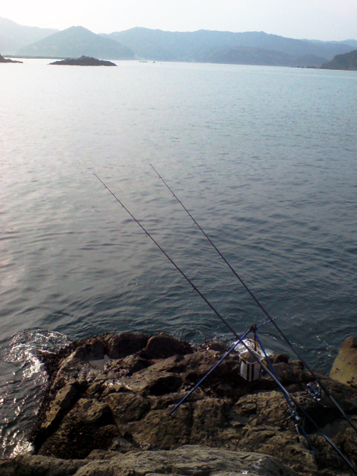 4月8日キンコロ開幕の初陣に、昼釣りは中紀の大○ヒジ○の磯に上がりマダイ狙いで挑みますた。水温15度 晴天 ベタ凪 同釣者 これぼんこの時期の大物は、朝一が勝負!潮も早く、錘30号が流されてる・・・・・(- -;雰囲気は最高なのだが、水温が前日より上がり安定していないのとベタ凪に加え、透き通る水質・・・・・(= =;; 気に加わん!!1時間後、竿が飛んだ!!!よっしゃ~!! マダイかっ!コロかっ!!久々のマシなアタリですがな~~~(@▽@)超ゴリ巻きで上がってきたのは・・・・・(@д@; ・・・ ウツボ大おまけに下の針にも・・・・・ガシラ30cm弱そらっ・・・・・引くわな~~~~~~~(= -;;その後も、二人共・・・・・ベラとガシラ (-。-;;)y-.o0夜釣りに期待しながら・・・・・・・・・・・・・・3時納竿!!一級磯のア○カでは、87cmのマダイ・・・・・(= =+そやからア○カに行こうって、言うたやろ・・・・・これぼん・・・・(- =;あかん!中紀では、期待でけん!!!(- -;と言うことで、HGに行く事に!!いざ! 第二ラウンド!! 開始!!!久々の、夜釣りや~~~~~~~!!!今度こそ、いてもうたる~~~!!!お願いやから、コロタマ来て~~~~~!! m(_)mキンコロメンバ~の皆さんのエ~ルも頂き、ヤルしかない!!が・・・・・ウツボしか、こんがな~ (T T;11時25分干潮なので・・・・・一旦・・・・・寝るっ!!!が・・・・・起きたら・・・・・3時50分 (- -;2時間だけ寝るつもりが・・・・・そら、ほとんど48時間起きてたから・・・・・しゃ~ないか(= =;満潮より、ゴ~ルデンタイム開始や~~~!!!2時から4時の方が・・・・・釣りたかったんやけど・・・な~!!が・・・ウツボとアナゴのみで・・・・・納竿!!!今年第一回夜釣りは、撃沈となりますた ( T T)bこの時期は、こんなもんや と、これぼんに言い聞かせ帰路に、着きますた・・・・・(= =; くそ~~~~~~っ!!!