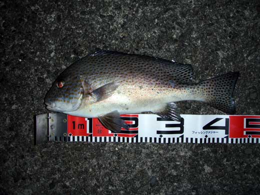 10月25日 丁稚これぼんと、久々に南紀釣行しますた。午前4時に、ブタマンに到着 ( ^^)今回はイシダイメインだったのですが、底物竿まで持って降りる勇気がないので投げ竿で、それでも2往復 (;=0=)天気予報では、お昼から風9メートル、波3メートルなので半日でつ。オラは、投げ2本!これぼんは、投げ1本と底物1本!まだ暗いので、タマミ狙いでイカを付けスタート!!!いきなり第1投目で、ロケット発射したのは これぼん! (;@@)タマミ 42cm ゲットン (^^)/しかし、最初で最後の本命ですた。(;T0T)ウツボも殆ど来ず、エサ取りすらなし~www明るくなり、1本づつの底物に期待!!!小さいアタリで、ウニはなくなりまくり。10時過ぎに、本命のデカイアタリ (;@0@)しかし針に、のらずwww30秒後に、またも竿が弧の字になるも・・・・・のらずwwwその1分後の・・・・・のった~~~~~( @▼@)上がって来たのは・・・・・ なんでやね~~~~ん!!! (;=▼=)タバコフエフキかよwww絶対・・・・・イシ物のアタリだったのにwww (;T0T)横取り・・・・・したのね・・・・・キミ・・・・・その後、波が高くなり撤収www最後に、カップヌードルを食べ・・・・・また2往復・・・・・釣果は、ダメでしたが・・・投げの剛竿でも、デカイ前アタリが見れただけでも収穫でつ!!!次回は、60upですな!!! (;--)y- o0